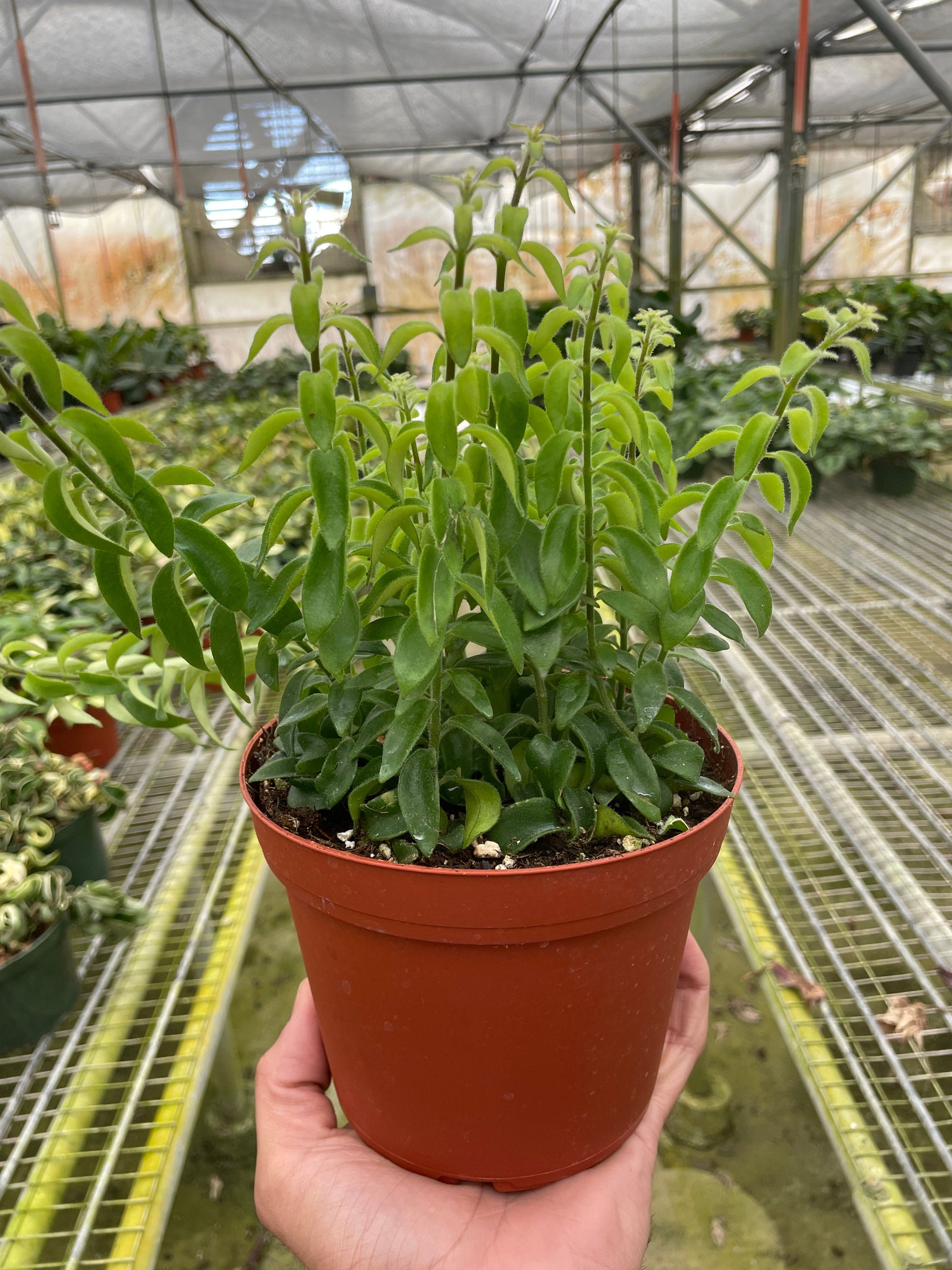- وصف : نبتة أحمر الشفاه المعلقة هذه تحمل اسمًا لشكلها ونمطها الذي يشبه أنبوبًا صغيرًا من أحمر الشفاه النسائي الموجود على سيقانها. هذا النبات الزائد رائع للنوافذ المشرقة والمطابخ المشرقة.