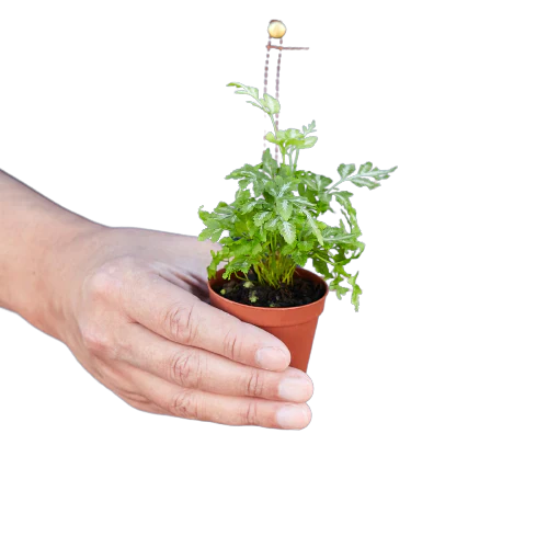 - Descripción : Originario de Asia y el Pacífico, el helecho Silver Lace es la variante más común de la especie Pteris ensiformis, con sus delicadas hojas de color verde plateado y su hábito de crecimiento compacto. En exterior, el helecho Silver Lace puede sobrevivir todo el año en climas subtropicales como California. El cuidado es similar, si no más fácil, al de otros helechos y requiere luz solar indirecta, humedad y poda. Puede crecer hasta 1-2,5 pies.